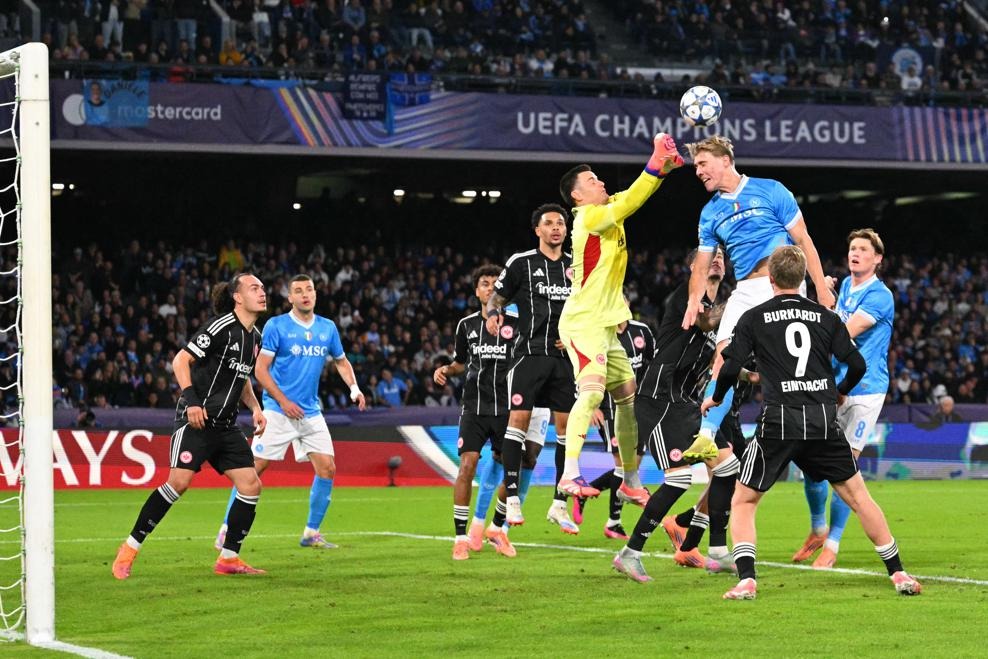 في حين خيّم التعادل السلبي على لقاء نابولي الإيطالي وآينتراخت فرانكفورت الألماني.