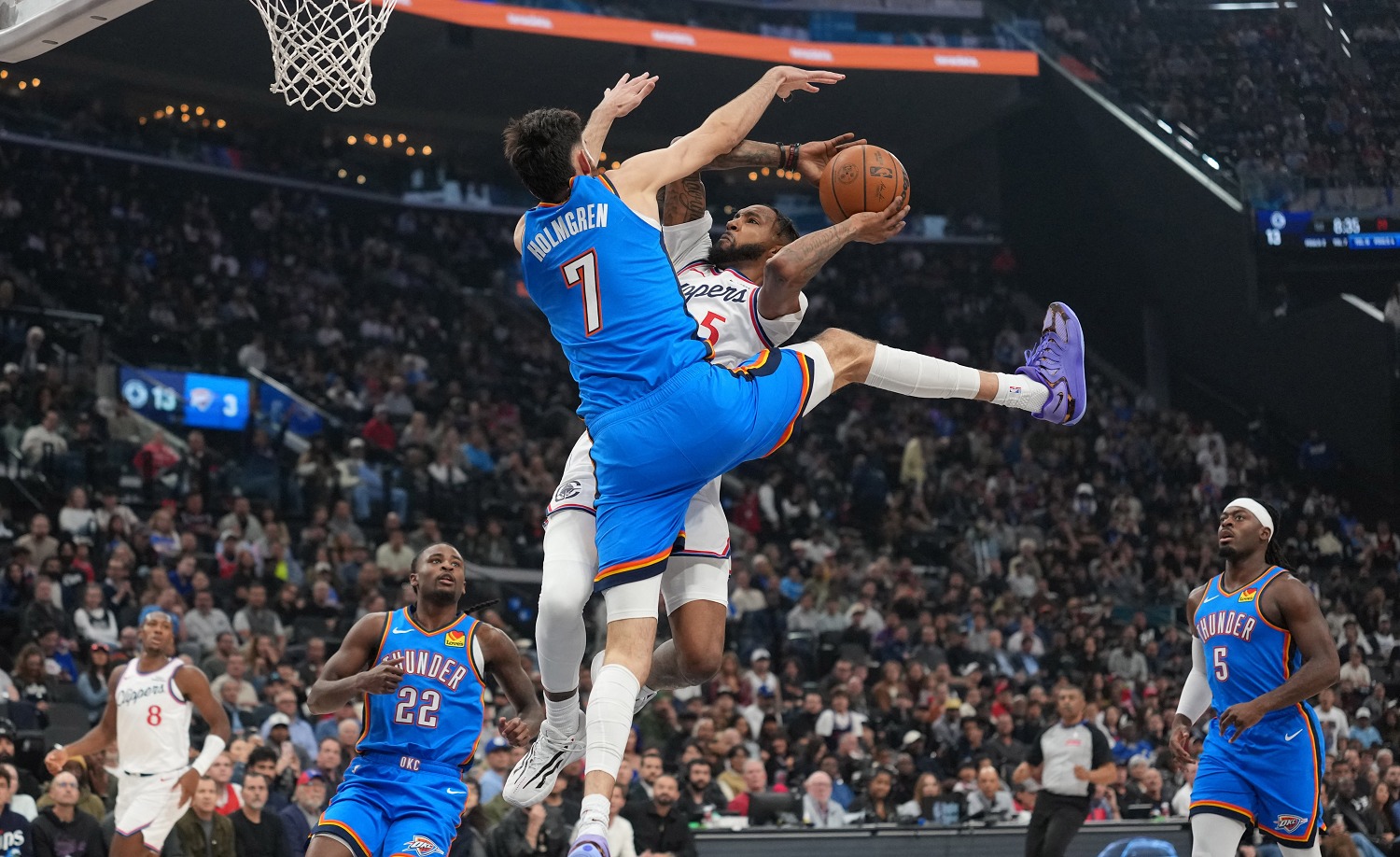 واصل أوكلاهوما سيتي ثاندر، حامل لقب بطولة كرة السلة الأميركية للمحترفين، انطلاقته المثالية هذا الموسم بتحقيق فوزه الثامن توالياً، متغلباً على ضيفه لوس أنجليس كليبرز بنتيجة 126-107 مساء الثلاثاء، ليصبح الفريق الوحيد الذي لم يتعرض لأي خسارة حتى الآن.