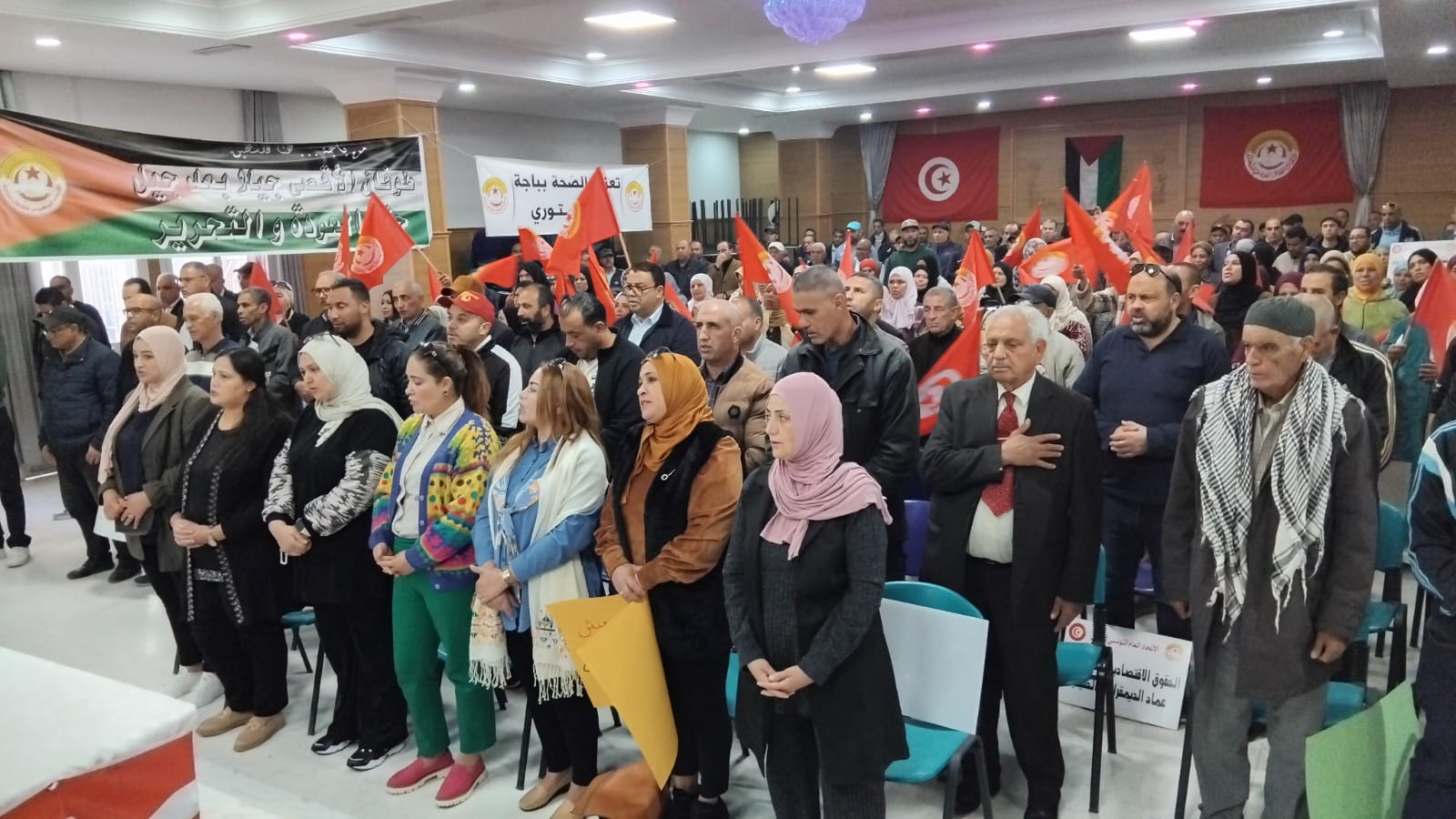 كما شارك في الجلسة الافتتاحية كل من الأخ عبد العزيز العرفاوي، الكاتب العام للجامعة العامة للمعادن، والأخ خالد العجيلي، الكاتب العام للجامعة العامة للمياه، والأخ لطفي العطواني، الكاتب العام لجامعة عملة التربية، إلى جانب حضور واسع للإطارات النقابية من مختلف القطاعات.