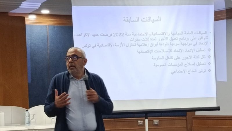 وبين ان نسبة التضخم أدت إلى تآكل المقدرة الشرائية و إعتبر ان الزيادة في الاجور لا تساوي فقط نسبة التضخم بل يجب ان تضمن حق العمال في النمو.