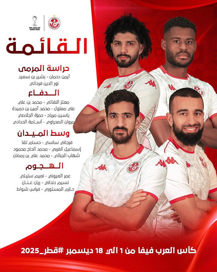 وسيخوض المنتخب التونسي غمار البطولة ضمن المجموعة الأولى التي تضم قطر المستضيفة، في منافسات ستجري بين الأول والثامن عشر من ديسمبر 2025 المقبل، وسط ترقب جماهيري كبير لمتابعة أداء "نسور قرطاج" في هذا الموعد الكروي العربي الهام.