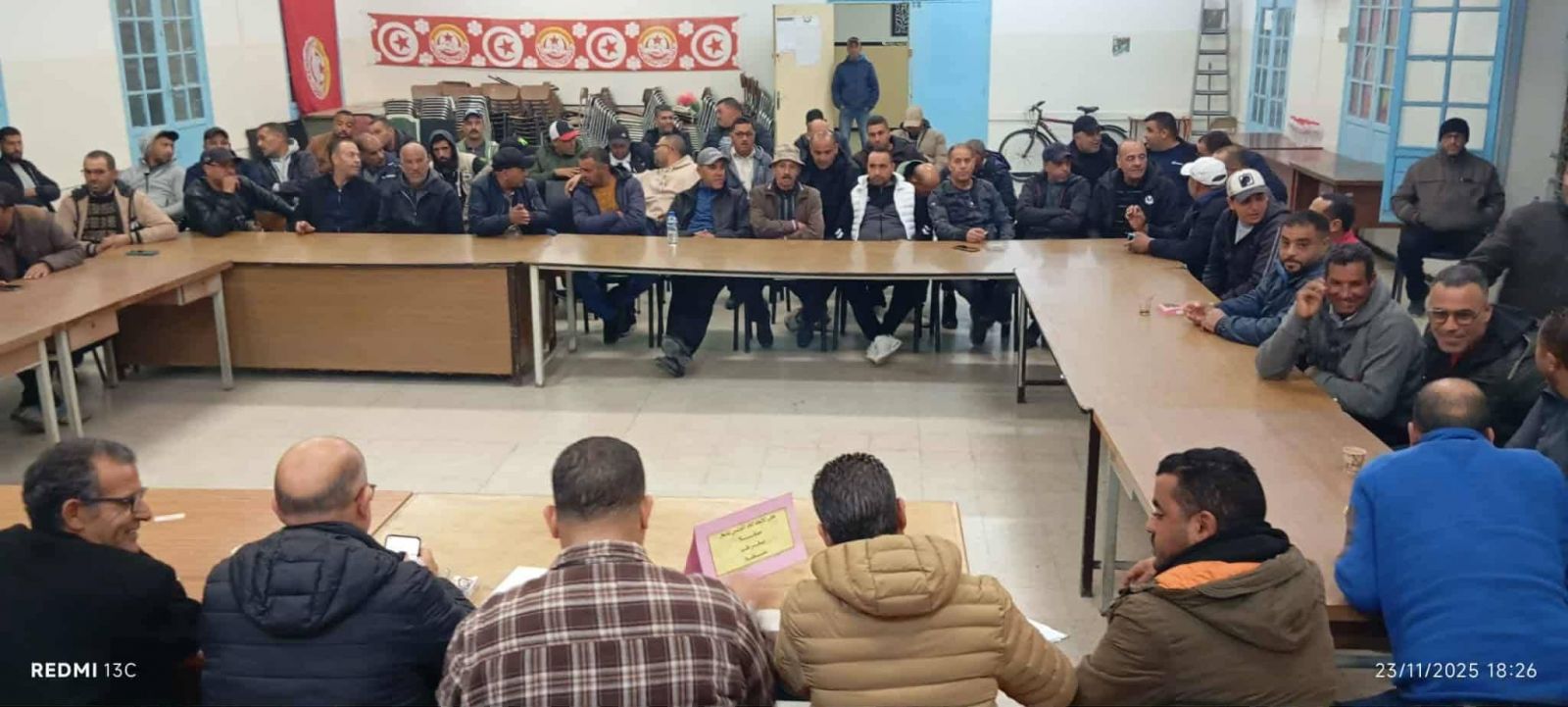 جاء ذلك خلال اجتماعهم العام المنعقد أمس الأحد 23 نوفمبر 2025 بدار الإتحاد الجهوي للشغل بنابل تحت إشراف الأخ حاتم بن رمضان كاتب عام الإتحاد الجهوي لتدارس الوضع الراهن للقطاع وما يشهده من تعطيل غير مبرر لمسار تنفيذ الاتفاقات السابقة.