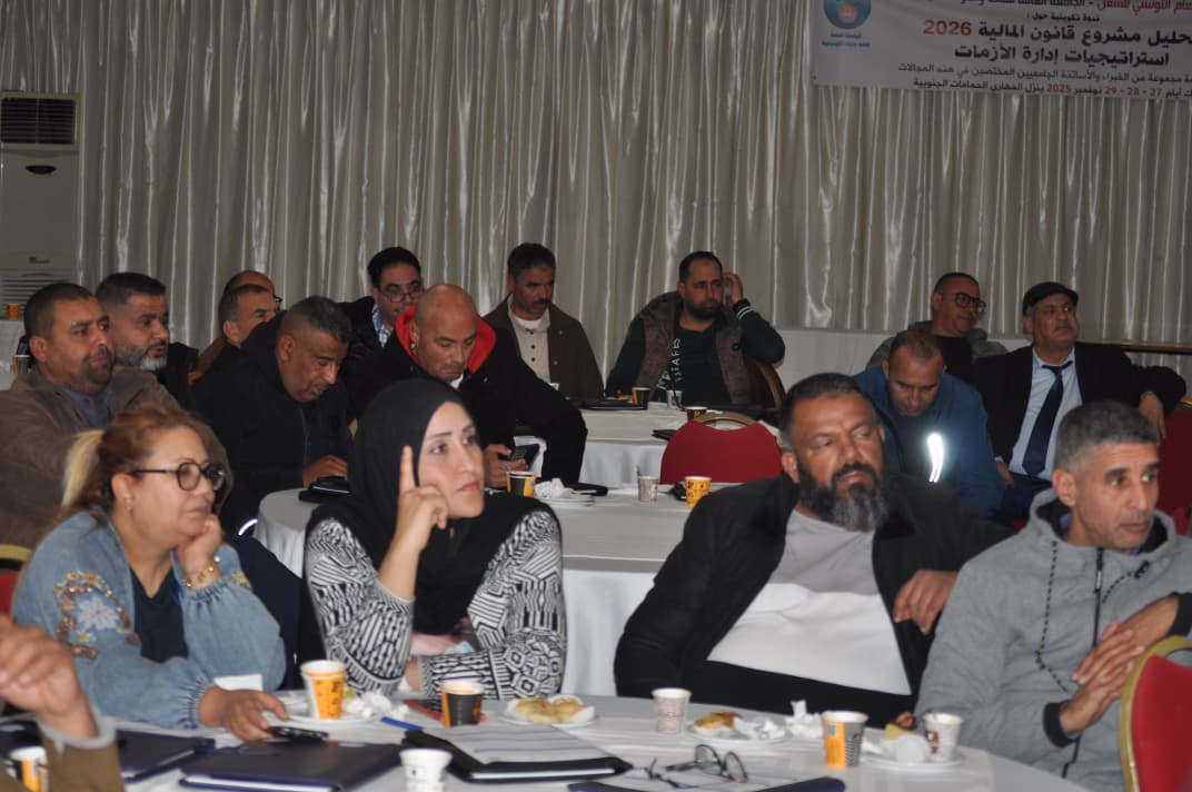 كان ذلك خلال افتتاح أشغال اليوم الثاني من الندوة التكوينية التي تنظمها الجامعة العامة للنفط و المواد الكيمياوية من 27 الى 29 نوفمبر 2025 تحت عنوان "تحليل مشروع قانون المالية 2026: استراتيجيات إدارة الازمة."