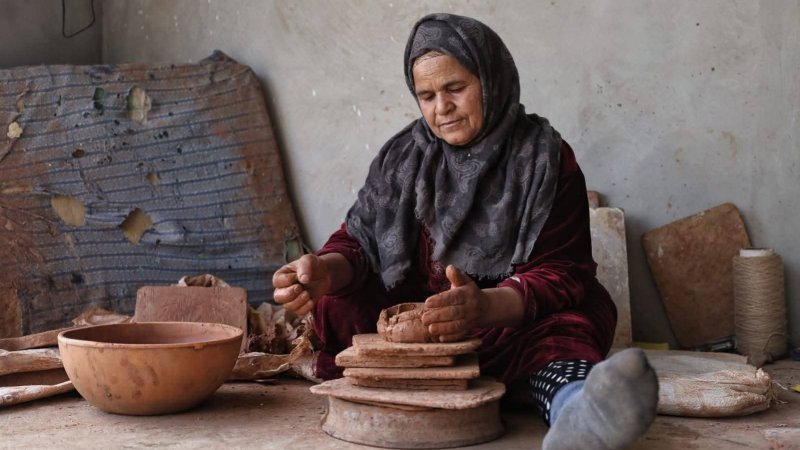 "أبدأ يومي بجلب التراب القريب المناسب لصنع أوانينا الفخارية، ثم أجلس على الأرض وألوّح به بين يديّ وأعجنه حتى يصبح طريًا، مستعدًا ليحمل بصماتي وتشكيلاتي. كل قطعة بالنسبة لي كائن حي، يشعر بما أشعر به، ويكبر معي شيئًا فشيئًا."