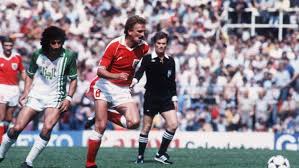 ويستعيد الجزائريون تلك المشاركة الأولى في كأس العالم، حين صنع "الخضر" المفاجأة الكبرى بالفوز على ألمانيا الغربية 2-1 بقيادة الأسطورة رابح ماجر، قبل أن يتعثروا أمام النمسا بهدفين دون رد في الجولة الثانية، ثم يحققوا انتصاراً مثيراً على تشيلي 3-2 في الجولة الثالثة.